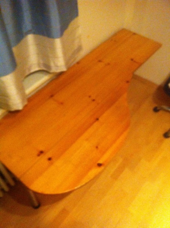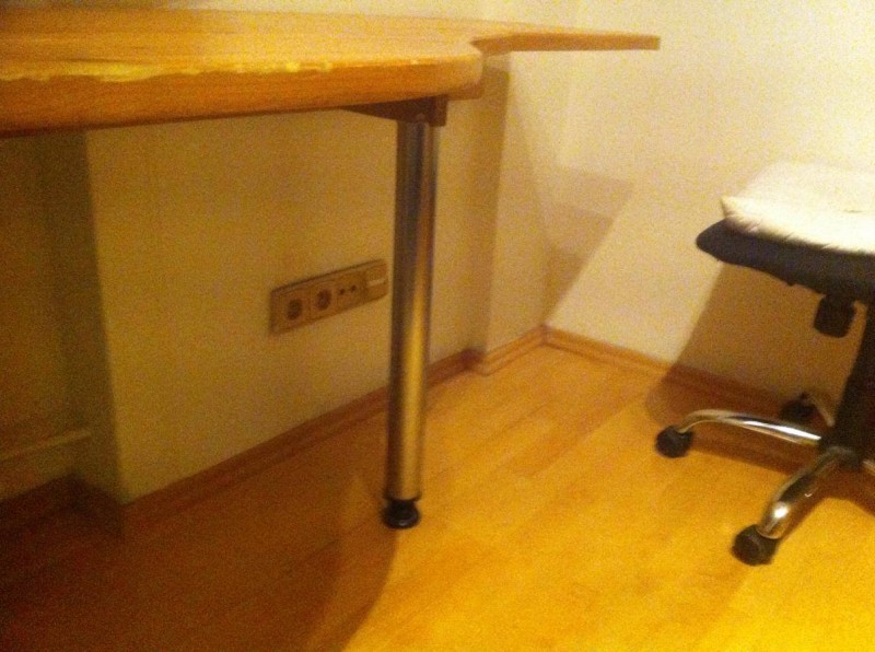 Pracovní stůl dětský. 2 nohy k připevnění na zeď, kovové nohy, borovicová lepená deska, res: obrousit desku a nalakovat (popřípadě)Jak si poradit s výběrem nové kuchyňské linky