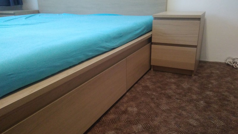 Prodám postel Ikea MALM 180x200cm s rošty, šuplíky pod postel a 2x stolek. Bíle mořený dub. Používaná necelý rok.Kuchyň a kuchyňská linka