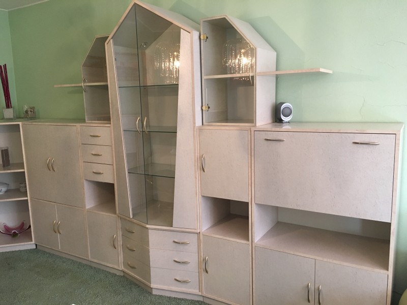 Prodám velkou rohovou obývací stěnu světlé barvy v dýze javor očkový. Nábytek je v bezvadném stavu, prosklená vitrína je osvětlená, spousta poliček a přídavných skříněk, šuplíků, policový systém, stůl k sedací soupravě, atp. Obývací stěna je variabilní, jednotlivé skříňky lze rozmístit dle vašich potřeb. Bližší informace na telefonu nebo e-mailem.Matrace a rošty