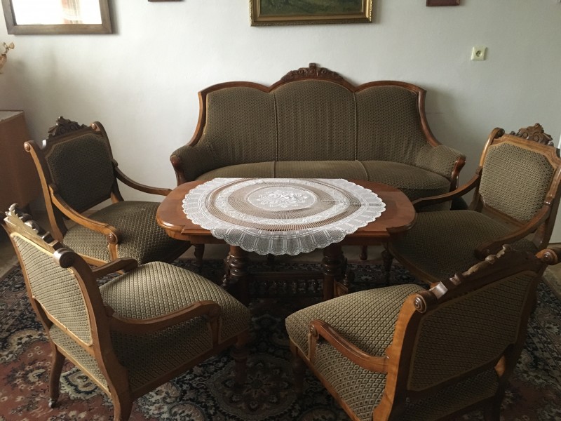 Nabízím sestavu starožitného nábytku do salónku. Skvělý stav, žádné poškození. - Sofa, konferenční stůl, 4 křesílka a sekretář. - Jedná se o historizující styl, 2.pol 19.stol. V případě zájmu mě kontaktujte.Kuchyň a kuchyňská linka