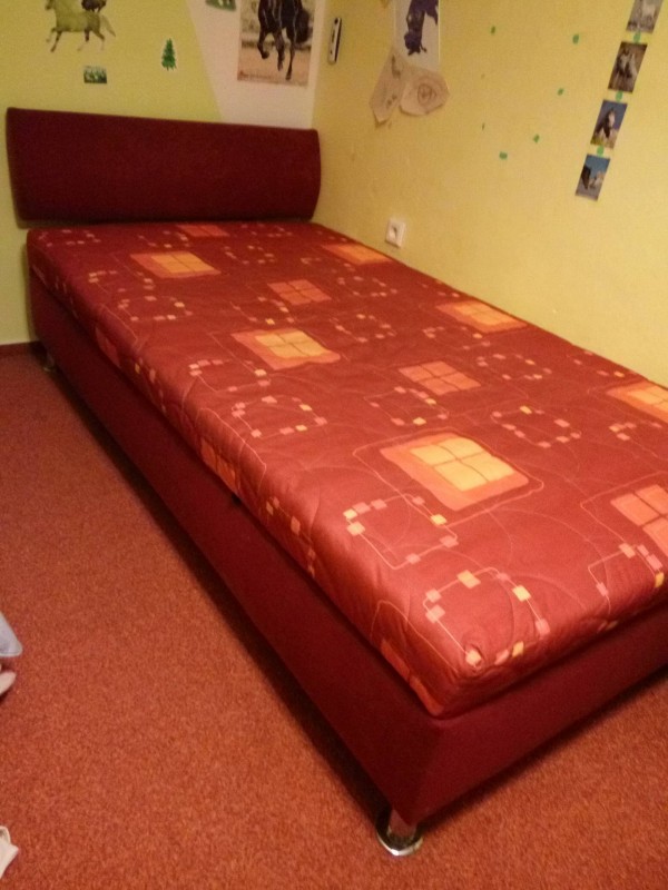 Dobrý den, nábízím jednolůžkovou čalouněnou postel v červené barvě. Postel má rozměry 200x110cm. Vysoká je 45cm. Jediná vada je protrhlá tenká látka která zakrývá laťky roštu (viz foto). Není to žádná vada, která by vadila používání. Je to spíše z estetického hlediska. Postel má velký úložní prostor. Dále také polohovací část v oblasti hlavy. Je velice pohodlná. Důvod prodeje je koupě větší postele. Na ceně se lze i dohodnout, jedinou podmínkou je však osobní odvoz.Kuchyň a kuchyňská linka
