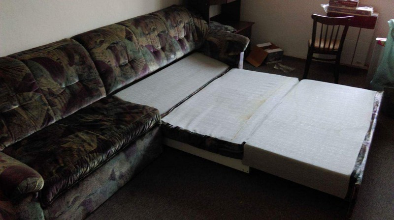 Rozkládací gauč Pětimístný, rozkládací gauč, 2 polštáře ve tvaru srdce.V dobrém stavu, bez prosezenin. Rozměry 2,85x1 m. Vhodné třeba na chatu. Cena není pevná.Kuchyň a kuchyňská linka