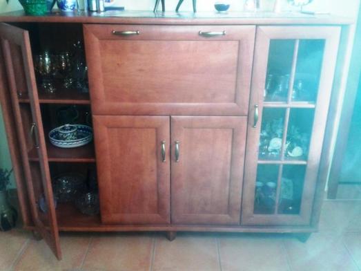 Prodám skříň s barem, rozměry 150x115cm, barva třešeň a komoda - 150x95cm, barva třešeň. Cena 5.000 Kč.Materiály nábytku