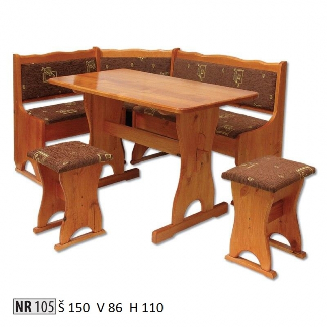 K prodeji je rohová jídelní sestava z masivu je vyrobena z kvalitního dřeva borovice a je lakována ekologickým, zdravotně nezávadným nátěrem. Rozměry: šířka 150 cm, výška 86 cm, hloubka 110 cm Možný výběr lakování: bezbarvé - borovice v ceně. Ořech, dub, olše za příplatek 500,-kč - poznačte do poznámky v objednávce! Doba dodání cca 4 týdny, sestavy jsou dodávány ve složeném stavu.Něco o nábytku...