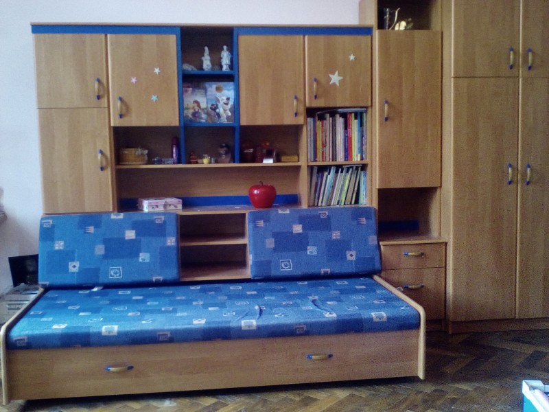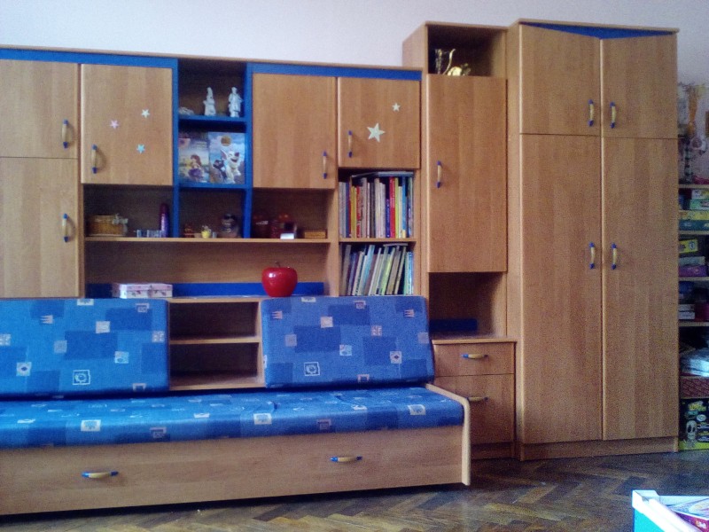 Dětská stěna - mnoho skříněk, vysouvací postel s úložným prostorem, dva peřiňáky a velká šatní skříň s nástavbou. Nábytek je ve velmi dobrém stavu.Inzerce v regionech