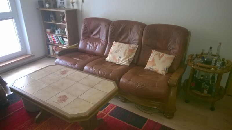 Nabízím nábytek vhodný pro obývací pokoj plus sedací soustavu. Je možné vše vcelku nebo i odděleně. Jedná se o vitrínu, bar, stůl, skříňky, televizní stolek a komodu. Případně je možné i zrcadlo, hodiny a elektrický krb. Sedací souprava se skladá ze tří částí, dvě části po třech a dvou místech a křeslo. Všechny části jsou vidět na přiložených fotografiích. Dostupné koncem září. Cena za komplet vše 9500, za sedací soupravu 2000, za nábytek 7500.Inzerce v regionech