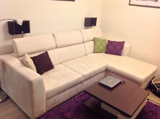 Sedací souprava Loft III je ve výborném stavu, pravá, potah cream, obsahuje úložný prostor a rozkládací dvoulůžko. Cena 11.000 Kč.Kuchyň a kuchyňská linka