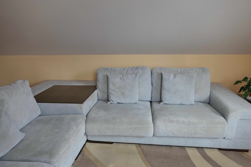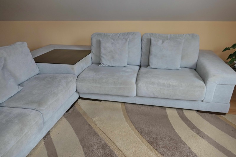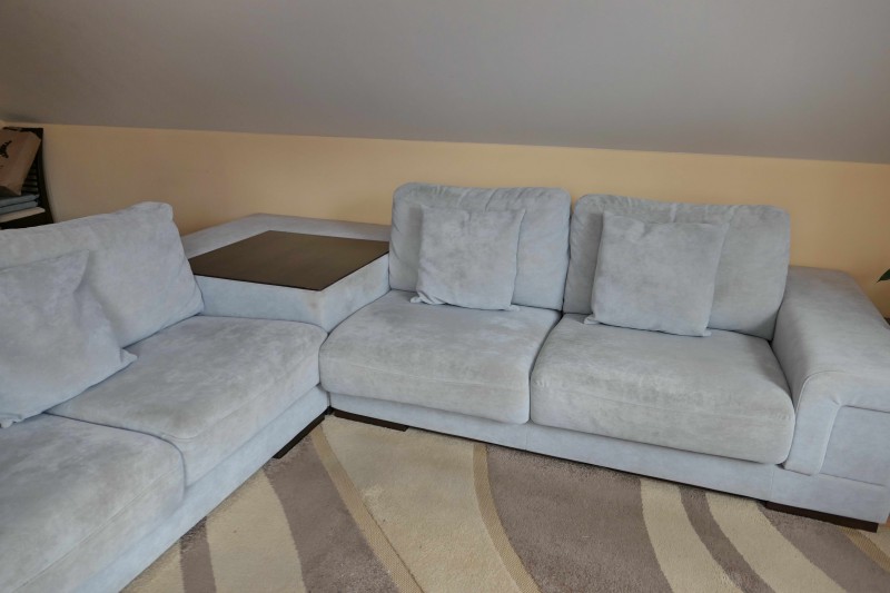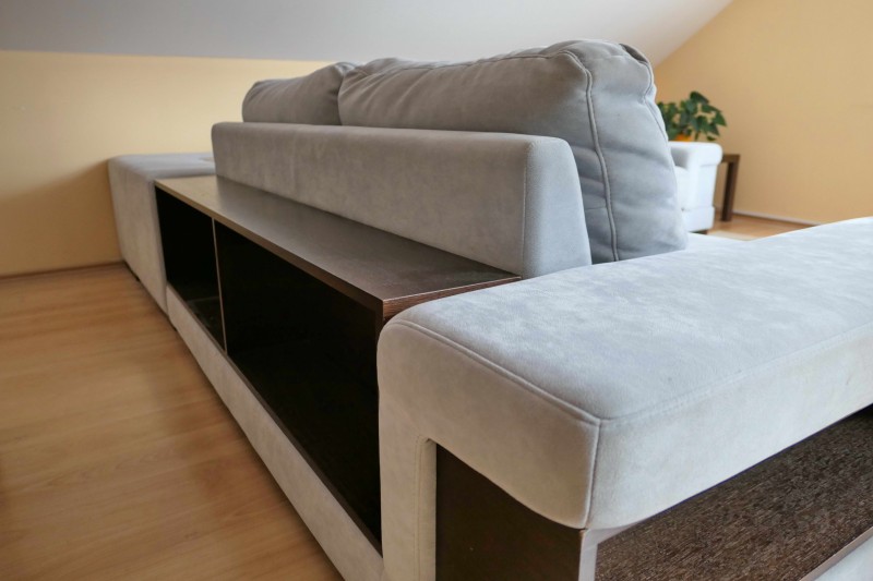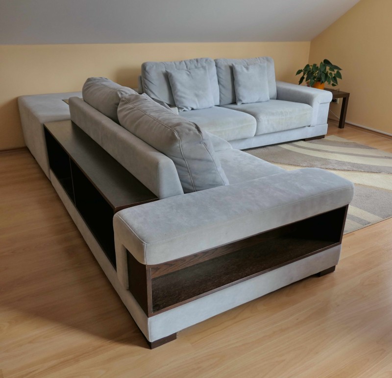 větší rohová sedací souprava305x305cm,hloubka 112cm,na zadní stěně police k odkládání knih a pod.Inzerce v regionech