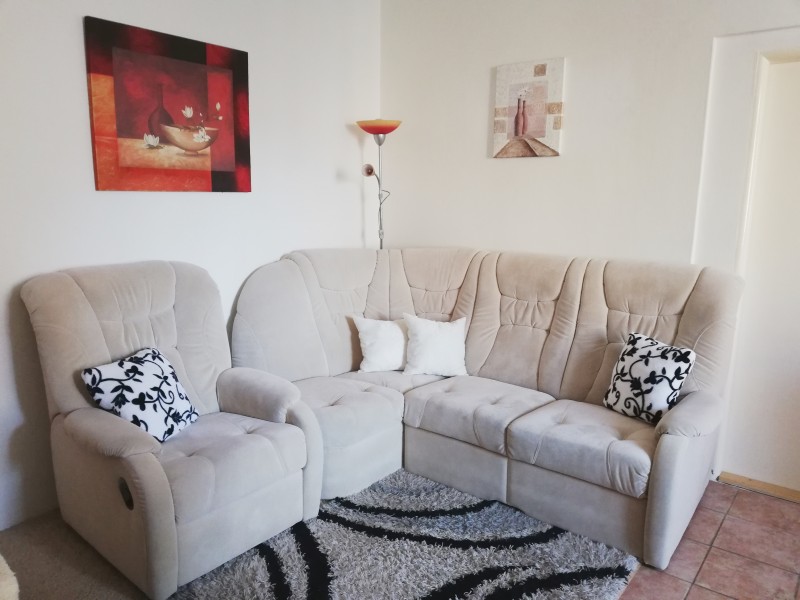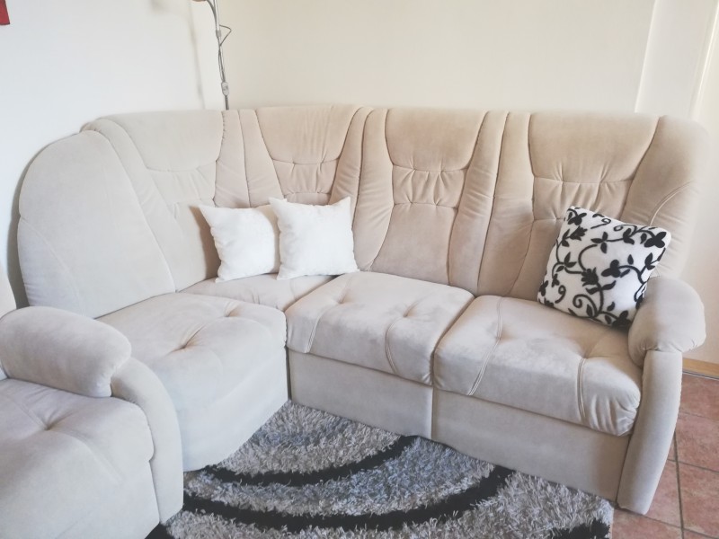 Nabízím k prodeji pěknou rohovou sedací soupravu s úložným prostorem a polohovacím TV křeslem z broušené kůže. Sedačka byla dělaná na míru, původní cena 50 tisíc. Je ve velmi dobrém stavu, neprosezená, lehce udržovatelná. Rozměry sedačky: šířka - 220 cm, hloubka - 150 cm. Šířka křesla: 85 cm. Celková výška je 105 cm a výška sedu 43 cm. Odvoz si musíte zajistit, při rychlém jednání poskytnu slevu.Inzerce v regionech