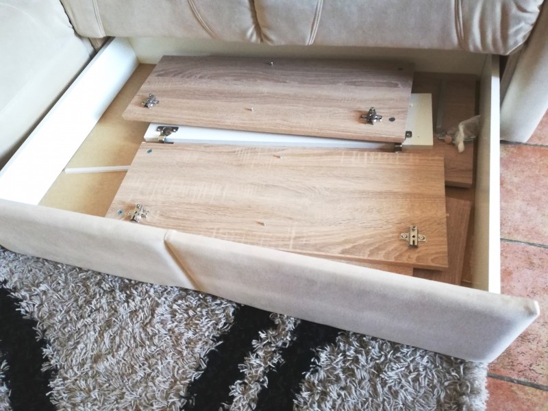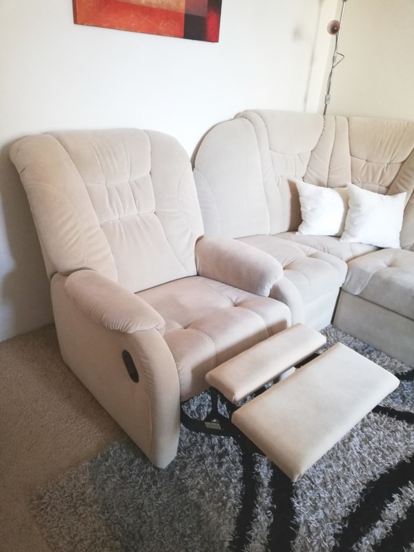Rohová sedací souprava s úložným prostorem a polohovacím křeslem