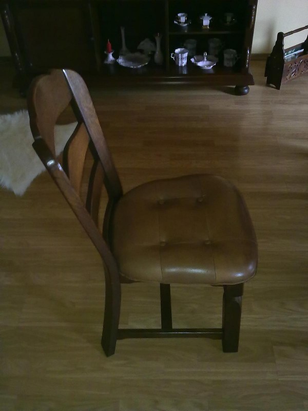 Prodám starožitný, dřevěný, rozkládací jídelní stůl se 4 židlemi (kožený sedák). Rozměr v rozloženém stavu (viz foto) 1,37m x 1,09m. Cena za komplet je 5.000 Kč a možnost dohody.Materiály nábytku