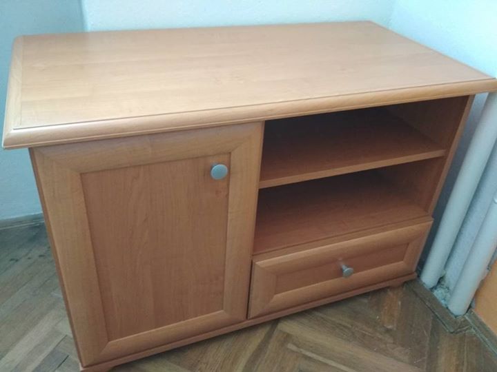 Prodám televizní stolek ve velmi dobrém stavu barvy olše. Rozměry: šířka 90 cm, výška 60 cm, hloubka 46 cm. Zdarma větší polička pro zájemce, kdo bude chtít. Stolek má dvě poličky, šufle a dvířka, kde jsou také dvě poličkyMatrace