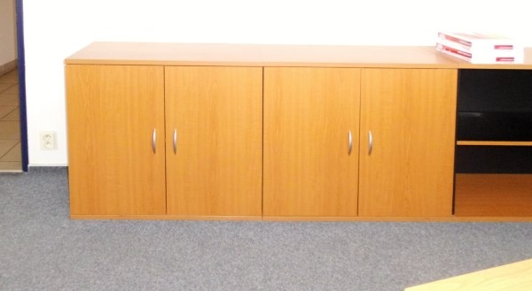 Prodám velmi zachovalé kancelářské skříně nízké s dvířky s jednou policí na 2 patra šanonů 2OH.Materiál LTD třešeň. Šířka (cm): 80 Výška (cm): 75 Hloubka (cm): 40Nábytek