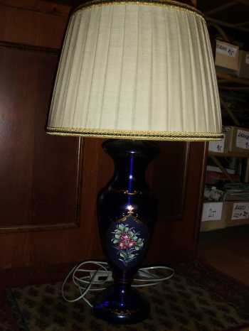 Prodám stolní lampu - modré zdobené sklo, výška 72 cm. Cena i dohodou.Kuchyň a kuchyňská linka