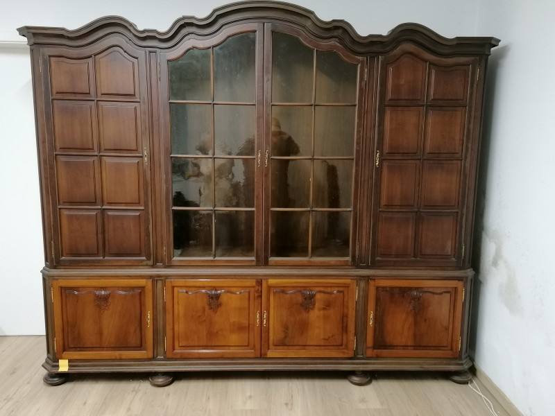Velká, historická vitrína, střední prosklenou částí. Kvalitní řemeslné dílo pravděpodobně z předváleného období, restaurované, velmi dobrém stavu. Rozměry DxHxV: 255x45x210 cmMatrace a rošty