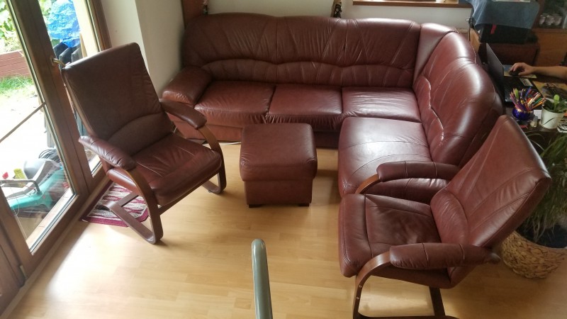 Prodáme 6 let starou koženou soupravu POP. Vše ve velmi dobrém stavu. Drobné odřeninky jsou vidět na fotkách. Jendá se o gauč, 2 křesla a taburet. PC 60.000,- Prodáme za 30.000,- Pozůstalost. informace zde: gauč: https://www.sconto.cz/artikel/413042902 křesla: https://www.sconto.cz/artikel/413042903Kuchyň a kuchyňská linka