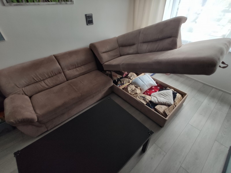 Nabízím zachovalou velkou sedací soupravu s úložným prostorem. Ze dvou oddělitelných kusů. Pouze osobní odběr Horní Měcholupy. Šířka 240 cm/ sedací plocha 182 cm. Hloubka 95 cm/ sedací plocha 50 cm/ dílů do prostoru 210 cm. Výška 80 cm/ výška sedu 43.Matrace a rošty