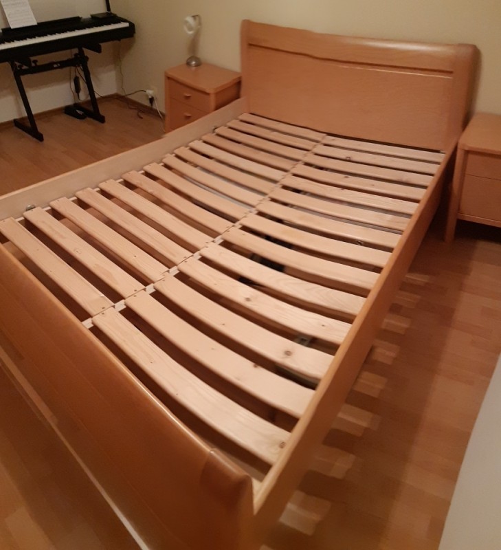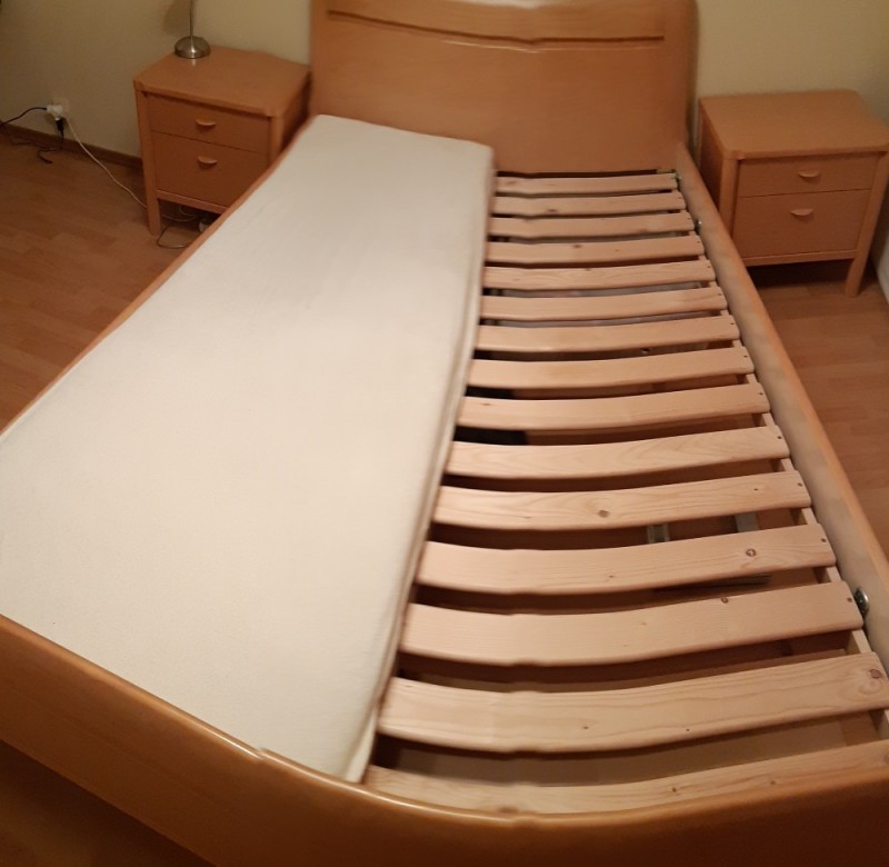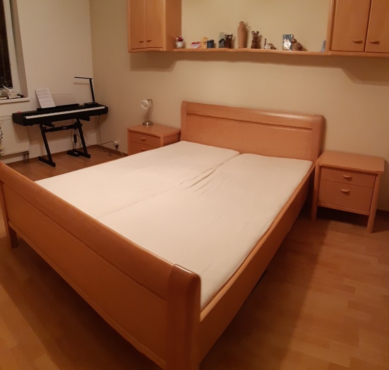 Prodám manželskou postel z masivu, zakoupenou ve Studiu Zdravého spaní. Postel je v prodloužené délce 210x160. V posteli jsou pevné rošty a při zájmu i matrace (v ceně ložnice), zakoupené také ve Studiu Zdravého spaní. Součástí manželské postele jsou noční stolky a závěsné skříňky s postelí (160 cm). Při rychlém jednání možná sleva.Inzerce v regionech
