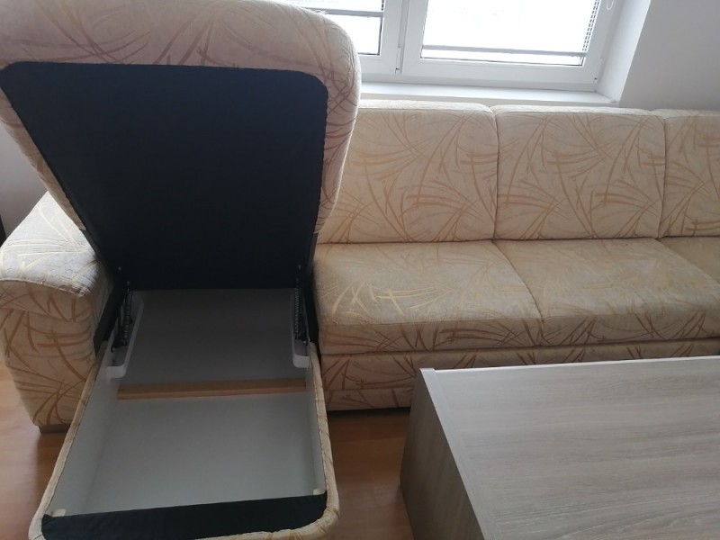 Nabízím na prodej velkou rozkládací sedací soupravu Evaristo s úložným prostorem. Sedací souprava je ve velmi dobrém stavu bez vad. Materiál je z vlákna a je příjemný na dotyk. Prodávám z důvodu rekonstrukce bytu, který bude v jiném stylu a pohovka je příliš velká na menší místnost. Rozměry: šířka - 313 cm délka - 222 cm výška - 90 cm plocha na spaní - 270 cm x 115 cm Nyní prodám za 7 000 Kč.Nábytek