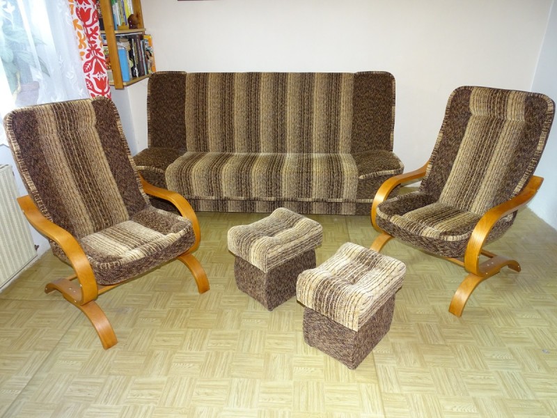 11 měsíců starý, málo používaný, český výrobce, 2x křeslo, gauč rozkládací s úložným prostorem, 2x taburet s úložným prostorem. Starší konferenční stolek zdarma. Při rychlém jednání možná sleva, Původní cena =17 000,-. V okolí Rakovníka mohu přivézt.Inzerce v regionech