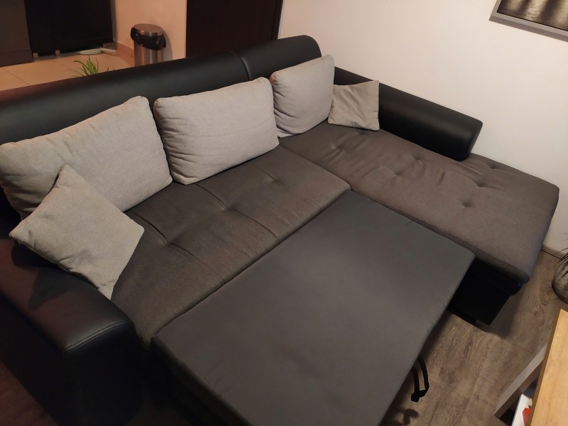 Prodám šedou rohovou rozkládací sedačku s úložným prostorem ve velice dobrém stavu. Žádné škrábance, nepotrhané. Délka je 255 cm, celková výška 83 cm, hloubka 68 cm. Sedačka je používaná cca 2 roky. PC 16 499 Kč. Pouze osobní odběr v Berouně. Odkaz na stránky prodejce: https://www.jena-nabytek.cz/products/rohova-sedacka-rozkladaci-vanilla-pravy-roh-up-cerna-seda?variant=39292049031320&gclid=Cj0KCQiAzfuNBhCGARIsAD1nu-8PMOjnv30Oo28ojVgct9lawJ2i0Pg1PAKbVl-E-4SIIoJeGHAw0wwaAqkoEALw_wcBKuchyň a kuchyňská linka
