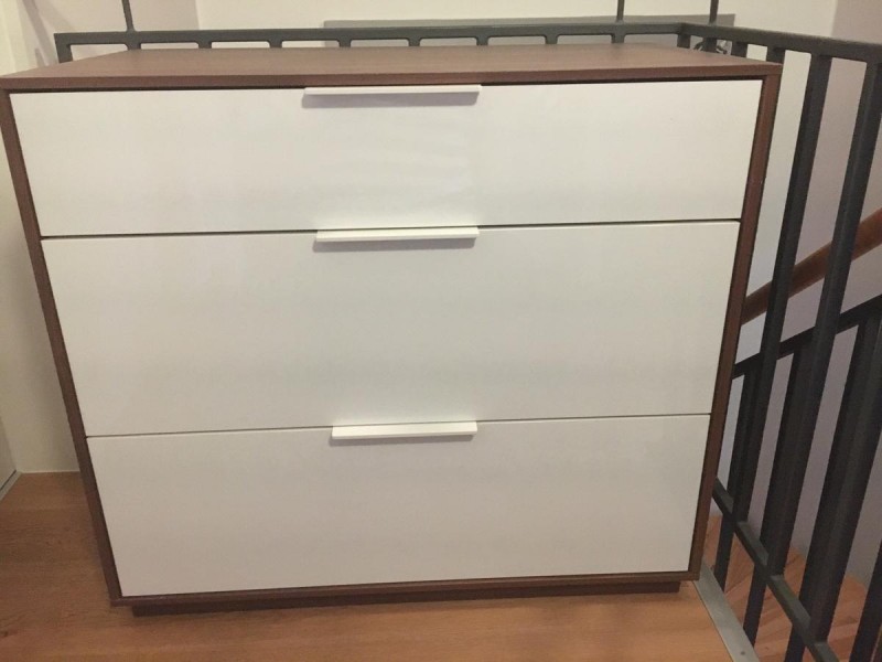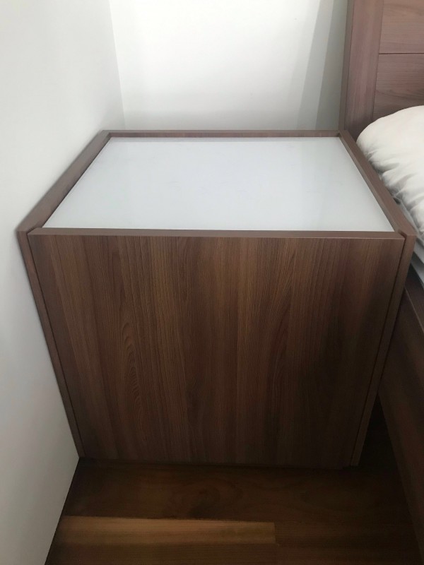 Prodám nábytek do ložnice, vše v krásném stavu jako nové, postel dýha včetně polohovacích roštů a 180x200 matrací, 2 noční stolky - dýha a bílé sklo, komoda - hnědá dýha a bílý lak. Vše z IKEA.Matrace a rošty