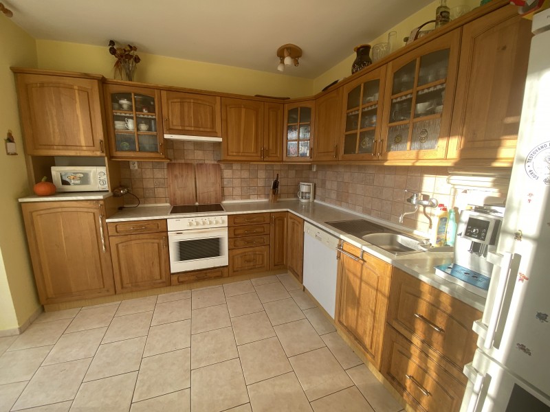 Prodám kuchyňskou linku 300x260 cm + 60cm na ledničku + nerez. dřez, sklokeramická deska + trouba Gorenje, digestoř Best Dvířka masivKuchyň a kuchyňská linka