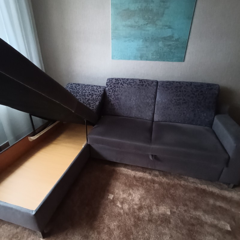 Rohová sedačka rozkládací, s úložným prostorem. Velice zachovalá, nepoškozená.Matrace a rošty
