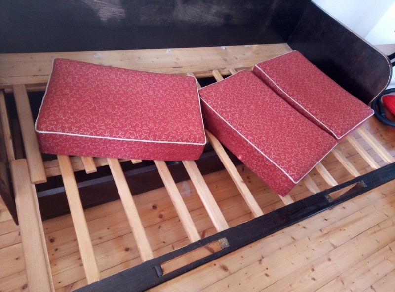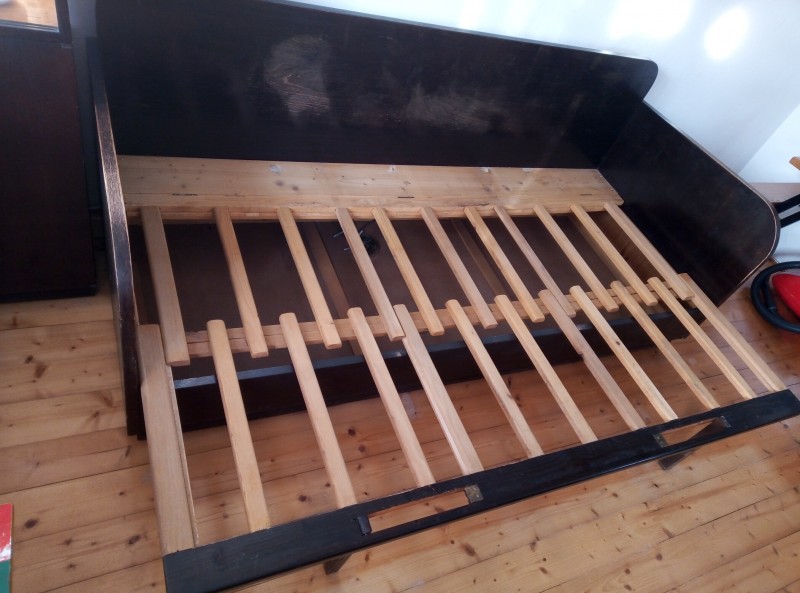 Prodám rozkládací gauč, černý, konstrukce pevná, mám všech 6ks matrací. Také černou trojdílnou skříň z roku 1957. Ještě peřináč r.cca 1970.Fota a ceny na dotaz.Kuchyň a kuchyňská linka