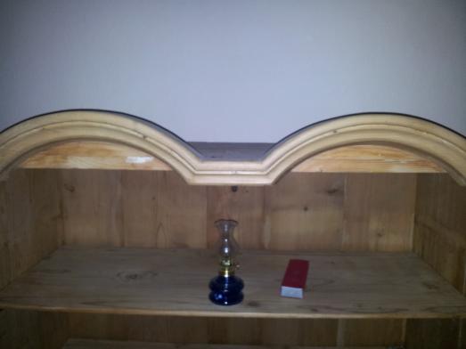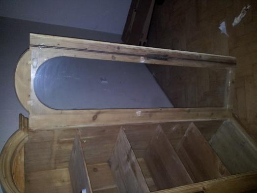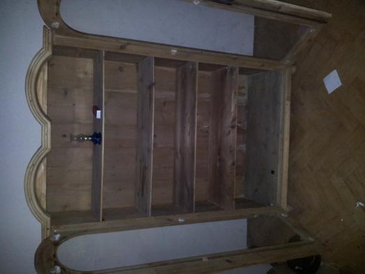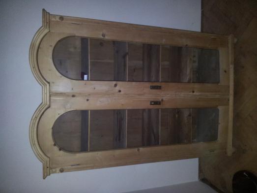 Prodám zachovalou dřevěnou skříň s prosklenými dveřmi, čtyřmi policemi a s dřevěným lemováním oblouků. Rozměry 50 š., 180 v., 110 d. cena DOHODOUMateriály nábytku