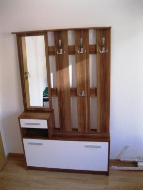 Prodávám věšák s botníkem a zrcadlem bílo-hnědé barvy. Rozměry věšáku: 98x111cm. Rozměry botníku: 98x47x25cm (plus malá police se šuplíkem). Rozměry zrcadla: 27x79cm (napevno přilepené k věšáku). Věšák se musí připevnit na stěnu. Málo používané, velmi dobrý stav. 1.900 Kč.Materiály nábytku