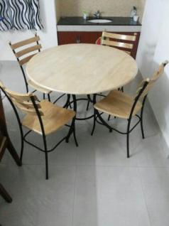 Nabízím kulatý jídelní stůl se židlemi, kombinace lakovaného, světlého dřeva a kovu. Stůl: 110 cm x 90 cm, židle: 45 x 50 x 95 cm.Matrace a rošty