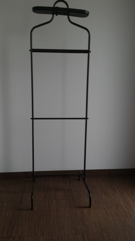 Praktický kovový sluha černé barvy. 3 háčky na pásky, kravaty, šátky nebo kabelky. Oodnímatelný podnos na hodinky, šperky a další drobnosti. Možno připevnit ve dvou různých výškách. (stav - zachovalý)Inzerce v regionech