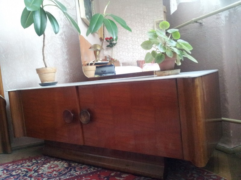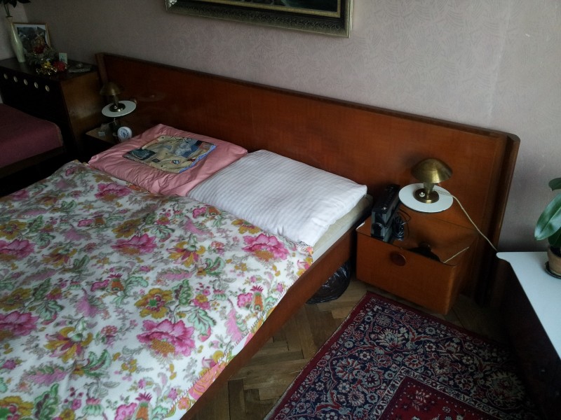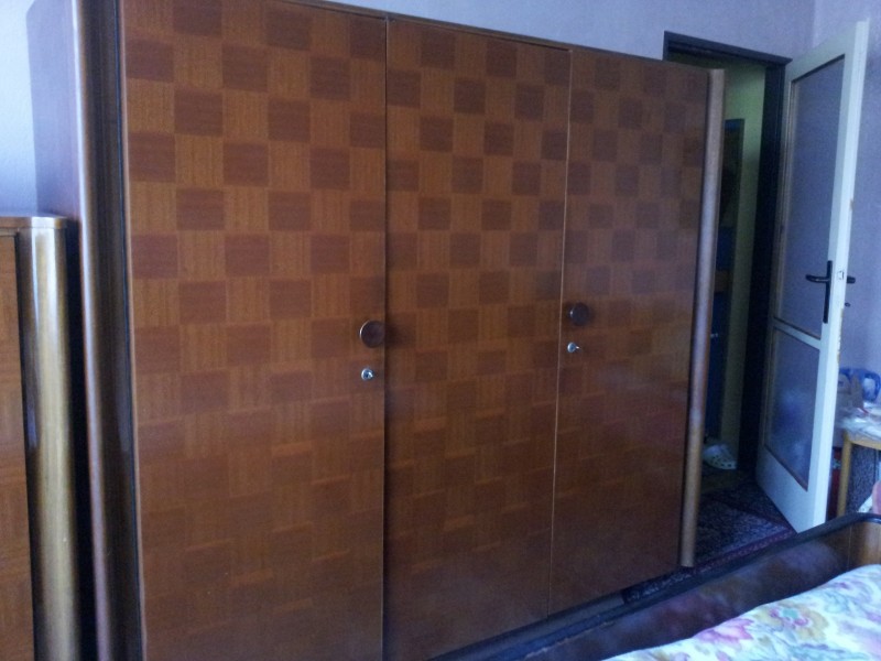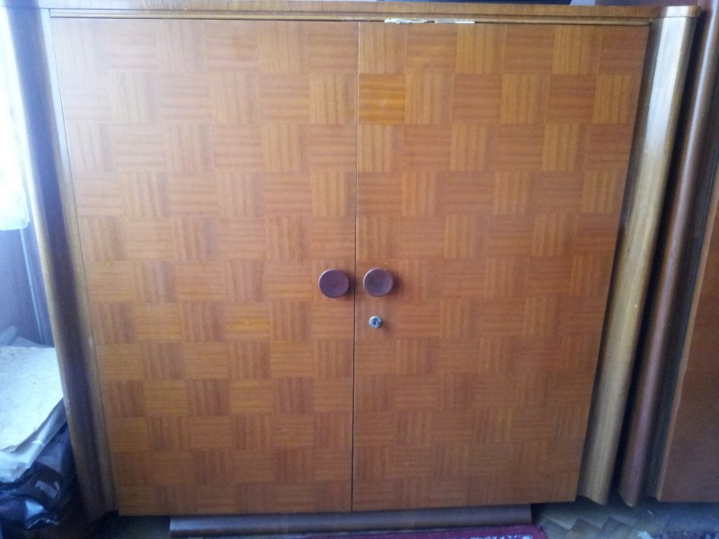 Prodám nábytek z ložnice - dvoulůžko, toaletní skříňka se zrcadlem, 3-dílná šatní skříň, prádelník v tmavě hnědém šachovnicovém dekoruKuchyň a kuchyňská linka