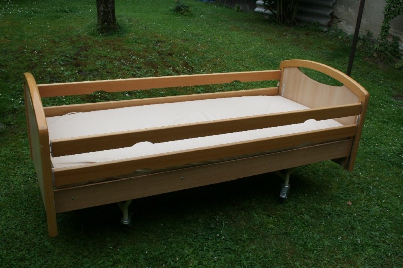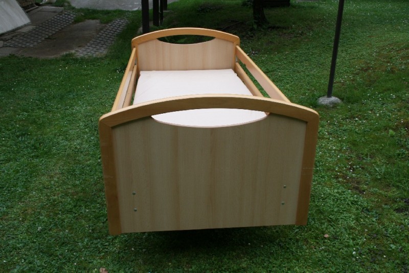 Prodám mechanickou zdravotní polohovací postel. Rošt kovový. Postel je na 4 kolečkách s brzdou, jde s ní lehce manipulovat. Má bezpečnostní postranice z obou stran. Postel byla používaná, místy poškrábaná. Pořizovací cena 19 570 Kč. Součástí je matrace s omyvatelným povrchem (béžová nebo bílá). Rozměry postele: šířka: 95 cm délka: 206 cm výška: 88 cm (s kolečkama) Rozměry matrace: šířka: 83 cm délka: 200 cm výška: 9,5 cm Další, náhradní matraci možno dokoupit za 700 Kč (Původní cena 3000)Materiály nábytku