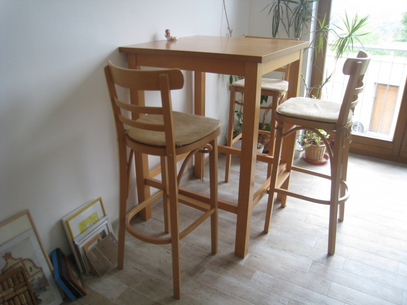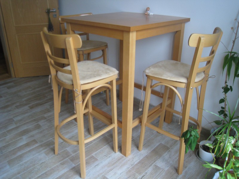 Prodám krásný jídelní set - zvýšený. Výška stolu od země 109cm a k tomu 3x židle s decentními podsedáky (pratelnými),výška židle 74cm. Rozměr desky stolu 80cmx80cm. Dohoda možná.Matrace