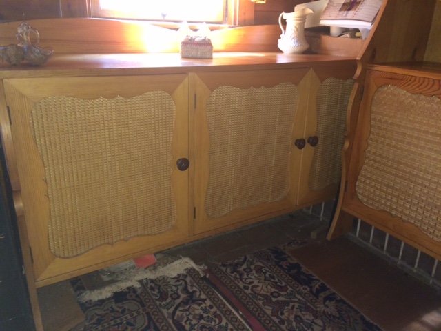 Prodám velice hezkou skříň vykládanou ratanem z modřínu o délce 1,65 m, výšce 80 cm a hloubce 50cm.Kuchyň a kuchyňská linka