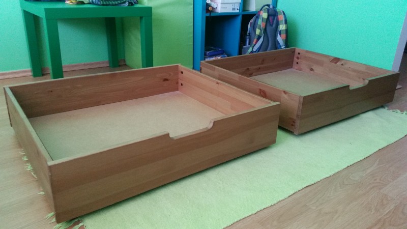 Chybí vám u postele úložný prostor? Nabízím dva šuplíky pod postel, v perfektním stavu, klasické dřevo, žádná dřevotříska. Ve spod kolečka. Rozměry 69cm hloubka, 80cm šířka, 17cm výška.Materiály nábytku