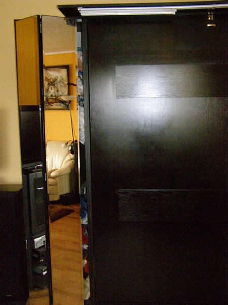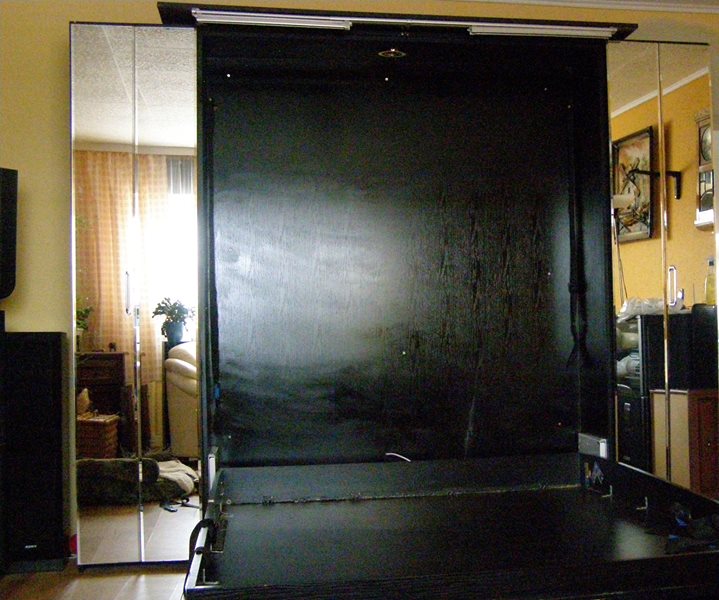 Sklápěcí postel, ideální záležitost do malého bytu, nahradí místnost "ložnici". Rozměry: Postel (skříň)barva černá 170 cm šíře, 220 cm výška a 42 cm hloubka. Uvnitř osvětlení. Dovnitř je vhodná matrace max šíře 160x200 cm, není součástí prodeje. 2 ks skřínky barva černá se skládacími broušenými zrcadly 50 cm šíře 42 cm hl, 220 cm výška, uvnitř police. Cena 2 skříně se zrcadly a sklápěcí postel 4.900,- Rychlé jednání = možná sleva. Stav dobrý- malé nedostatky, po mechanické stránce výborný. Další otázky sdělím. Preferuji vlastní odvoz, bydlíme za HavířovemNěco o nábytku...
