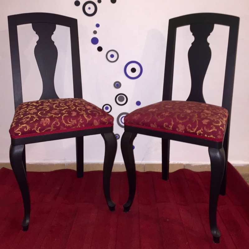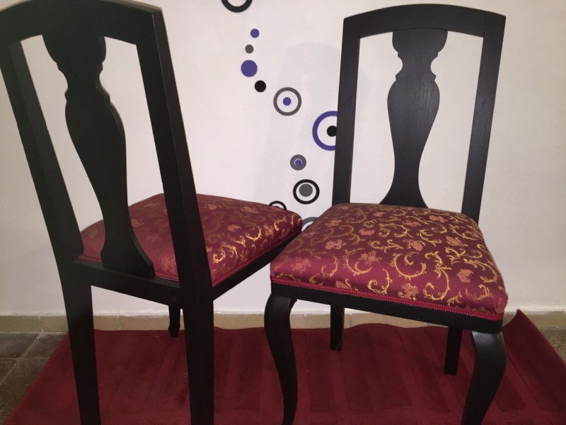 Nabízím dvě velmi pěkné stylové starožitné židle pro celkové opravě, nové čalounění, dřevo ve velmi dobrém stavu. Bez poškození, pevná konstrukce. Cena za obě. Prodej jen dohromady.