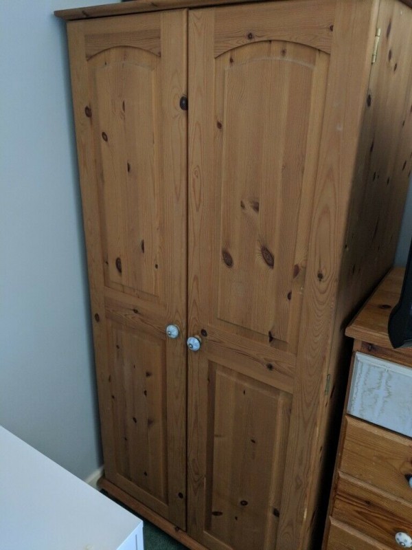 Jednoduchá vešiaková skriňa z masívneho dreva, používaná v detskej izbe, ale možno ju umiestniť kamkoľvek do dedinské izby.Nábytok