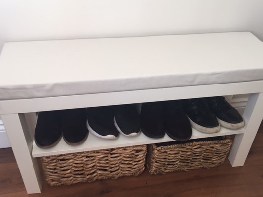 Lavice do predsiene, ktorá slúži ako otvorený botník. Dĺžka 1 m. S vankúšom.Niečo o nábytku ...